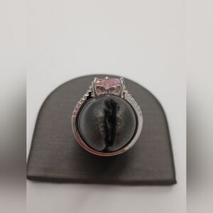 Elegant heart-shaped pink stone ring set in silver. Perfect for adding a touch of romance to any outfit.