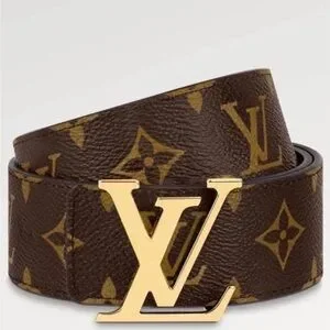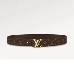 Luxurious Louis Vuitton Initials reversible belt. Monogram on one side and brown leather on the other. Features embossed branding and iconic LV buckle with gold-tone hardware. Crafted in Spain—perfect for dressing up or down.