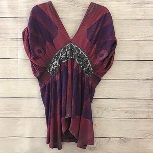 Free People Modal Bohemian Tunic Swim Coverup Surplice Sequin Purple Pink S