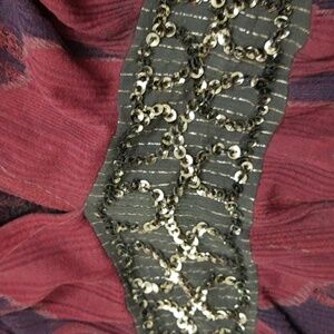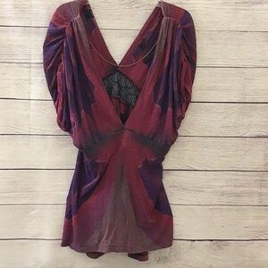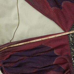 Description and Features: Vintage Free People Bohemian Tunic Surplice Sequin Embellished Purple S NWOT, Please see photos for measurements for best fit. Pretty shades of purple and pink with charcoal gray sequin embellished band at Empire Waist; Open, Deep V Neck Front and Back. Beaded Chain Detail across back. Surplice Neckline. Elastic waist, Ruched Shoulders, Dolman Short Sleeves. Semi-Sheer Viscose Crinkle Textured Gauze Fabric. Wear as a top with tank underneath or swimsuit coverup. Beautiful, Flattering Draping.
