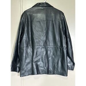 Vintage KC Collections Womens Black Leather Jacket Zip Collar Style Outerwear