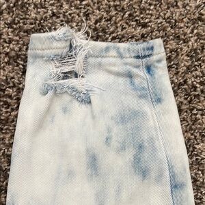 Stylish sky blue skinny jeans with ripped details. Ideal for a chic, casual look. Comfortable fit.