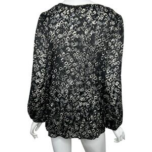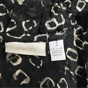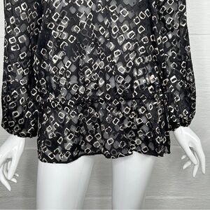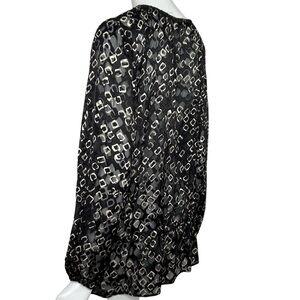 Chico's Size 1 Geometric Print Top Tunic Black & Beige Sheer Long Sleeve Shirt