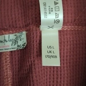Description And Features: Intimately Free People Under The Stars Slim High Rise Thermal Fit and Flare Leggings In A Beautiful Dark Dusty Pink Color, Called Rosewood. Leggings Are Slim Fit Through The Hip, High Rise, Super Soft And Stretchy Thermal Knit, Slim-Fitting Pants With Flared Leg And Slits At The Cuffs, Elastic Waistline For Secure Fit. Wear As Pajama Pants; Cute Enough To Be Worn Daytime, Or At The Gym, Or To Lounge Around. MSRP $68.00. NOTE This Listing Is For Pants ONLY.