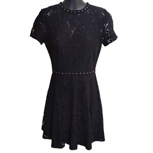 MISSGUIDED Studded Collar Waistline Double Layer Black Lace Mini Dress MED NWOT