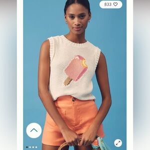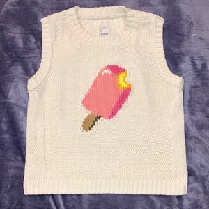 Adorable sweater with a pink popsicle design. Features a yellow bite detail.