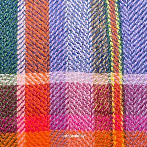 Vibrant wool scarf in a colorful plaid pattern. Avoca Mill out of Ireland wove this scarf. It's soft and pliable, not stiff and scratchy.