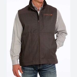 warm and stylish with the Cinch Men's Brown Vest. Perfect for layering, this vest offers comfort and a sleek look.