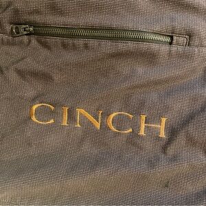 Front showcases embroidered CINCH Logo on left breast next to a vertical vip pocket, and the lower right also with a larger vertical zip pocket. Vest has a total of 3 zipper pockets with free-moving hardware.
