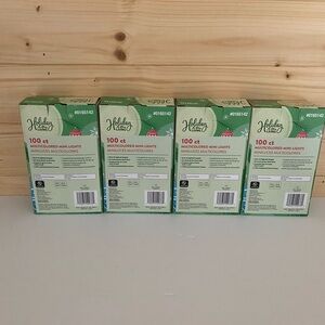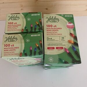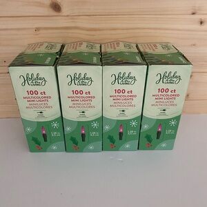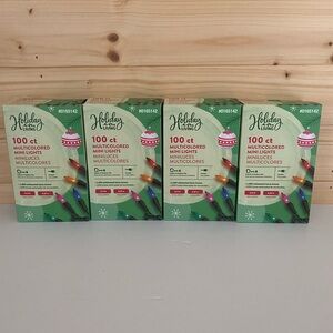 Set of Holiday Living Mini String Lights - Lot of 4 Boxes. Each box contains 100 multicolored mini lights, perfect for Christmas trees, indoor/outdoor decor, garland, wreaths, and festive displays.