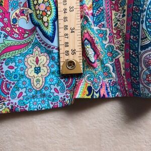 Vibrant paisley pattern. Long sleeves. Comfortable fit. Perfect for any occasion.