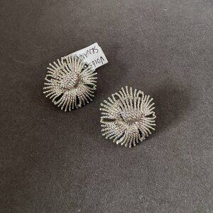 Classic vintage earrings by Monet, featuring a dimensional swirl / burst design with a textured silver-tone finish. Signed Monet on the back. Clip-on style.