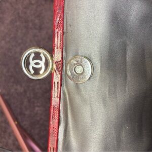 Features: It features red textured leather, a signature quilted pattern, a silver-tone chain strap, and a prominent CC logo clasp closure. Front compartment w snap closure, and two interior compartments w magnetic snap closure and interior pocket in one compartment.