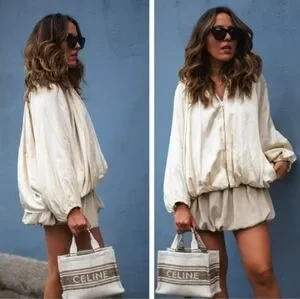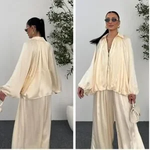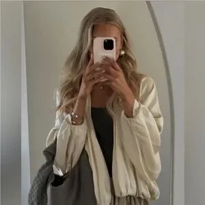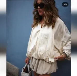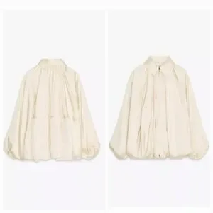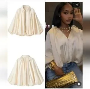 ZARA NWT Satin Bomber Jacket Puffed ZW Collection Cream Size M