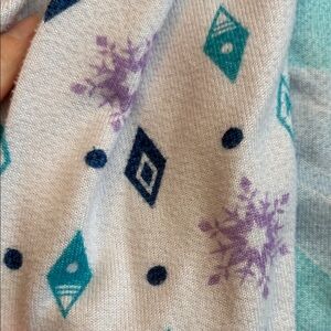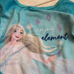 Enchanting Frozen pajamas with a teal top and white patterned pants. Perfect for magical dreams.