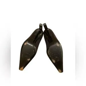 Preloved pumps. Good condition. Step out in style with these elegant black pumps. Perfect for any occasion, these shoes offer both comfort and sophistication. Semi pointed, minor wear throughout shoes such as fading, scratches and wear on soles. Heel is approximately 3.25”. No trades. Smoke free and pet free environment. Thank you.