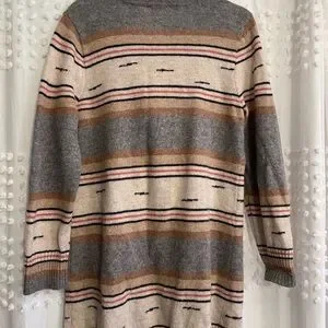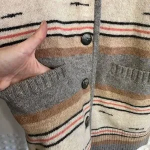 This is a beautiful classic Pendleton Sweater with a southwest style pattern. It does have two small holes that are pictured but they could possibly be stitched. Still a great sweater from a legacy brand. Enjoy!