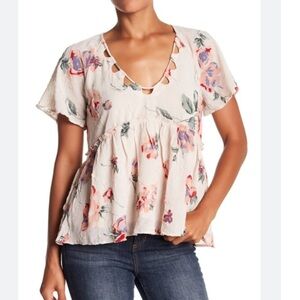 Embrace elegance with this floral print women's top. Featuring a beautiful blend of cream and pink hues, this top is perfect for any occasion. Chic and stylish floral print top for women. Features a beautiful blend of colors for a fresh look.
