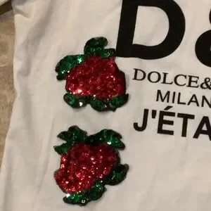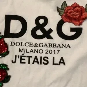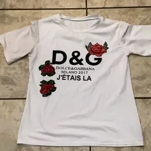 Chic white tee with bold red floral embroidery. Features Dolce & Gabbana branding. Stylish and comfortable no label authentic not known med to large size
