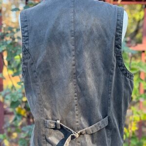 Slate gray vest with button closure. Includes three front pockets. Perfect for layering.