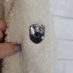 Stylish faux fur cream with slick polyester olive green lining. Warm and cozy for your outdoor adventures.