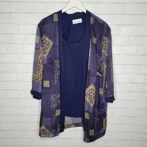 Dressbarn VINTAGE 90s Blue Green Chiffon Cardigan Blouse