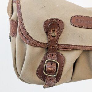 Bolsa para cámara Billingham Hadley Small, muy usada pero totalmente funcional. Presenta desgaste visible y un pequeño desgarro cerca de la correa que no ha crecido con los años ni afecta su uso. Lona resistente al agua, cuero con pátina natural y acolchado interior intacto. Fabricada en Inglaterra.