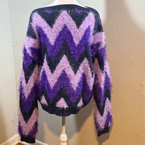 Tags: Y2K, Barbiecore, mohair sweater, Saint + Sofia, zigzag knit, purple fluffy, cashmere blend, London fashion, maximalist, coquette core