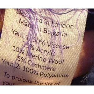 Luxury blend: 35% viscose, 30% acrylic, 10% merino wool, 5% cashmere.