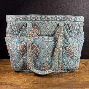 Vera Bradley Tote Bag Womens Turquoise Paisley Quilted Shoulder Travel Purse