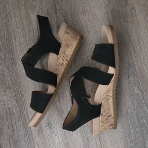 Elegant black sandals with a strappy design. Comfortable and stylish for any outing.