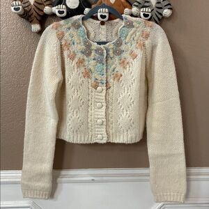 Size small color ivory. Beautiful sweater see pics for details. Ships out same day
