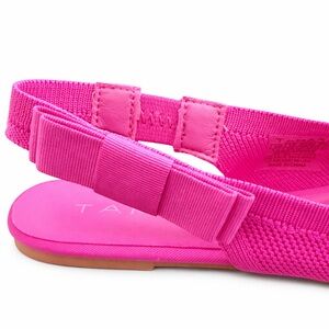 NEW TAHARI Singapore Pink Knit Slingback Flats w Decorative Side Bow Pointed Toe