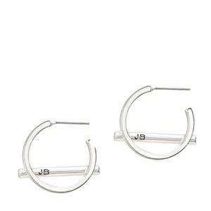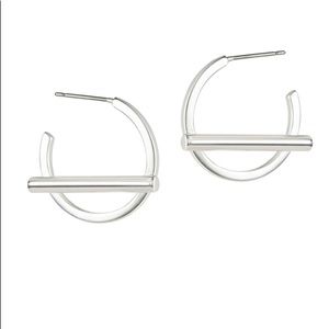 A cylindrical bar strikes through a lightweight, small hoop earring, mimicking shield protection. View from side profile for full dramatic effect.