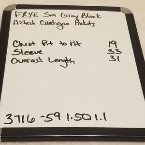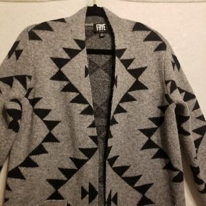 Frye Small Cardigan Sweater Gray Black Pockets Southwestern Aztec Western Ranch