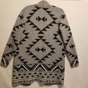 Frye Womens Size Small Cardigan Sweater Gray Black Pockets Long Line Heavy Southwestern Aztec Western Ranch