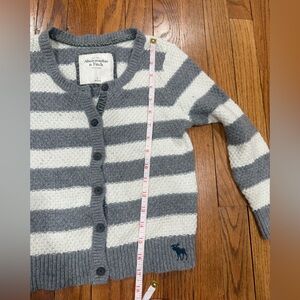 Vintage Y2K Abercrombie & Fitch striped cardigan sweater in grey and white in women’s size small. Soft knit made from a cotton blend with rabbit hair (angora), giving it a lightweight feel with subtle warmth. Classic button-front cardigan style with ribbed trim and embroidered logo detail. Perfect for preppy, minimalist, or everyday layering in all seasons.