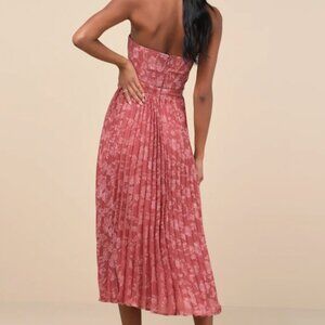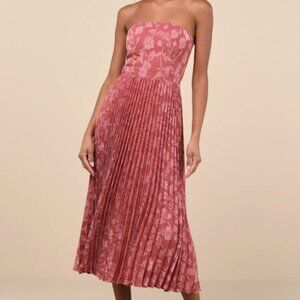 Lulus Perfectly Stunning Rusty Rose Jacquard Strapless Midi Dress Pink - Size L