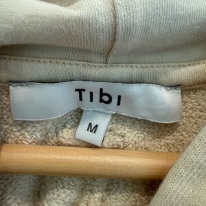 Tibi Hooded Cocoon Sweatshirt in Ivory. Size Medium.