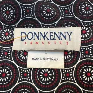 Stylish Donnkenny floral blouse with a black and white circular pattern. Perfect for any occasion.