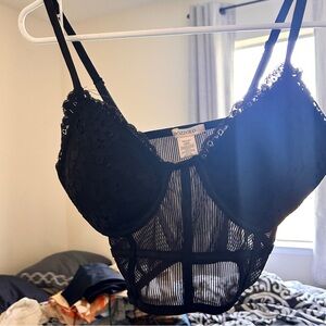 Bozzolo Cage Lace Bralette Women’s Medium Black Pullover Stretchy in good condition/ adjustable straps/ mesh see through cage body / padded