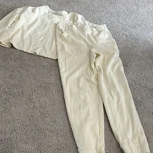 Chic and comfortable cream track pants with matching top. Ideal for casual outings. Worn once.