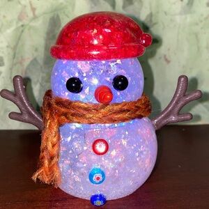 Add a touch of holiday cheer with this charming handmade lighted snowman figurine, featuring a sparkling red hat and a cozy scarf. Perfect for enhancing your festive decor.