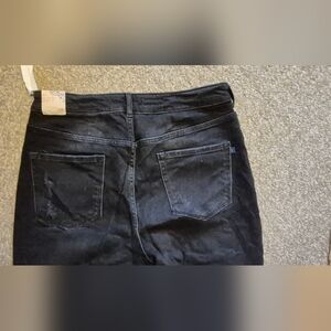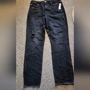 Pilcro by Anthropologie The vintage straight leg black jean With distress. High rise.Sz.32T waist 16",rise 13" Inseam 32" frayed hem NWT Retail $160