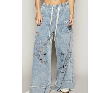 ✨ Style: Vintage-wash denim with intricate embroidered + cutout detailing throughout