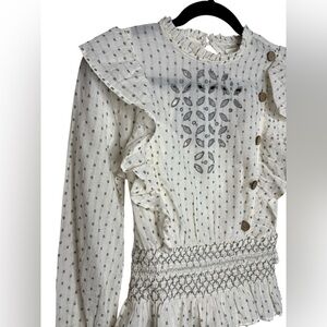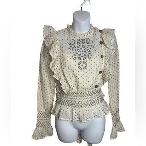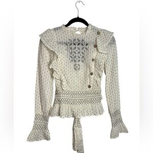 Rahi Cali Whimsy Ventura Victorian Embroidered Open Back Cotton Top Small