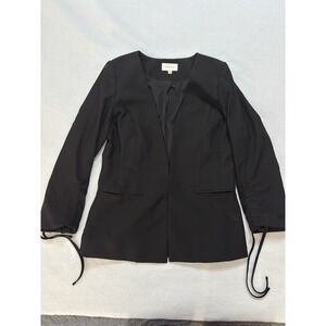 Skies Are Blue Blazer XS Black Collarless Open Career 3/4 Ruched Sleeve Pockets