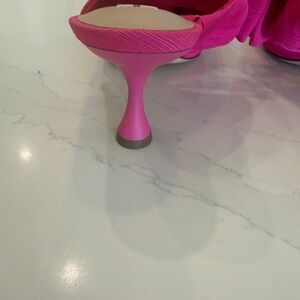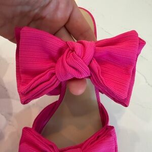 Chic fuchsia open tole mules with bows.