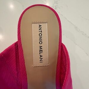 NWOT ANTONIO MELANI Open Toe Bow Mule Heels