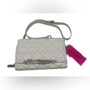 Betsey Johnson Landon Quilted Heart Crossbody W Chain Strap White NWT